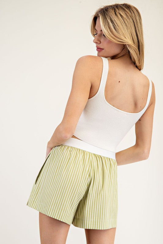 Regular price $21.99Introducing our Jace Striped Boxer Shorts in a vibrant lime hue. These premium shorts feature a faux button down front, elastic waistband, two hip pockets, and mini side slits. Enjoy a comfortable, relaxed fit and add a touch of sophistication to your loungewear collection.