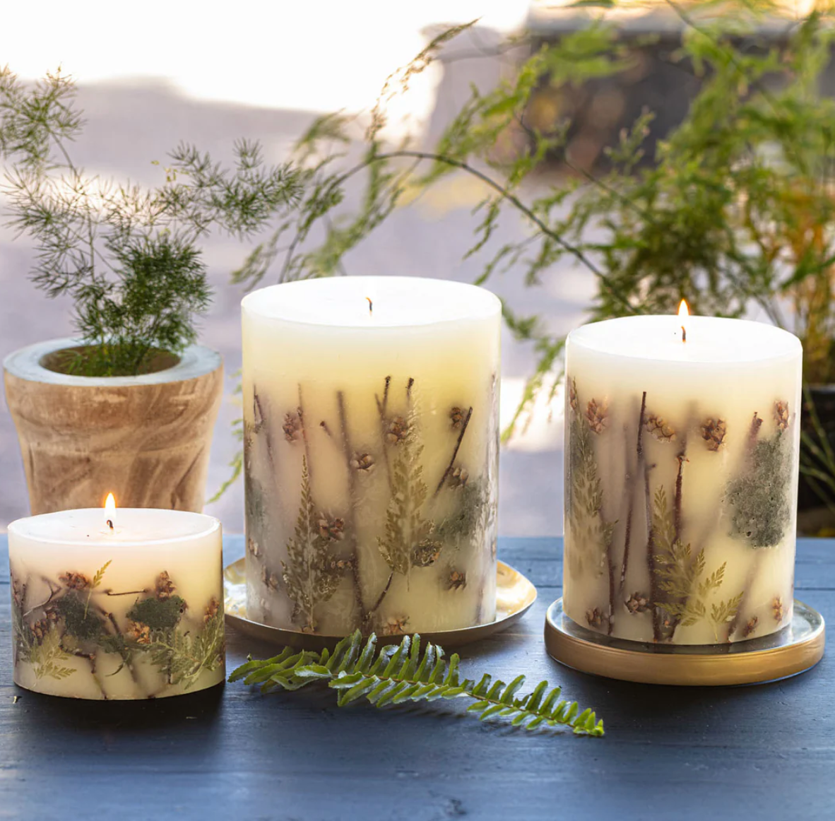 With every botanical element placed carefully by the hands of our candle artisans, these beautifully fragrant candles can take up to 3 days to perfect. During this process each candle is carefully touched 10 different times, from pouring our exclusive wax blend by hand, to lovingly shaping each piece by hand and knife. This artisanal process ensures that the candle appeals to multiple senses by filling your space with fragrance and illuminating botanical elements.