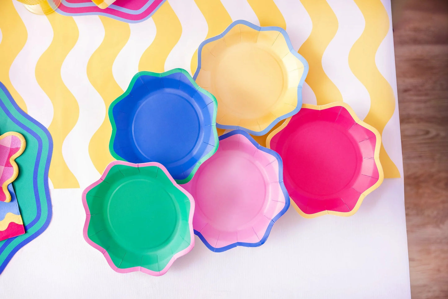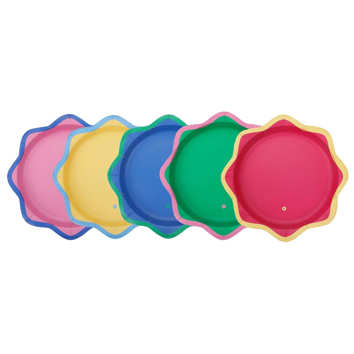 Bring a pop of playful color to every sweet moment. The Colorwave Dessert Plates are designed to turn treats, cake, and snacks into a full-on party moment. Featuring bold, oversized scalloped edges and cheerful color-blocked hues, these plates add instant charm to birthdays, brunches, showers, and everyday celebrations.