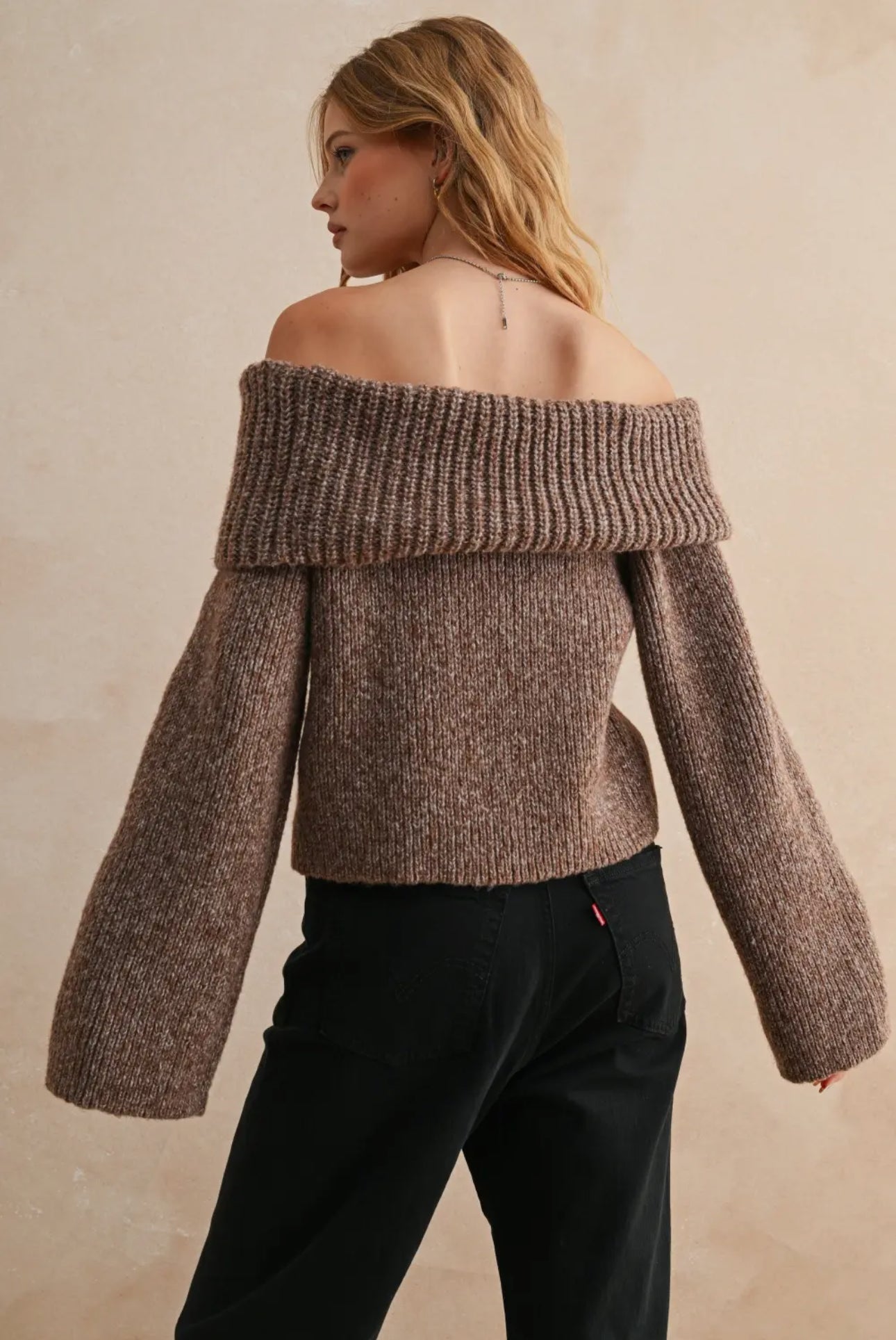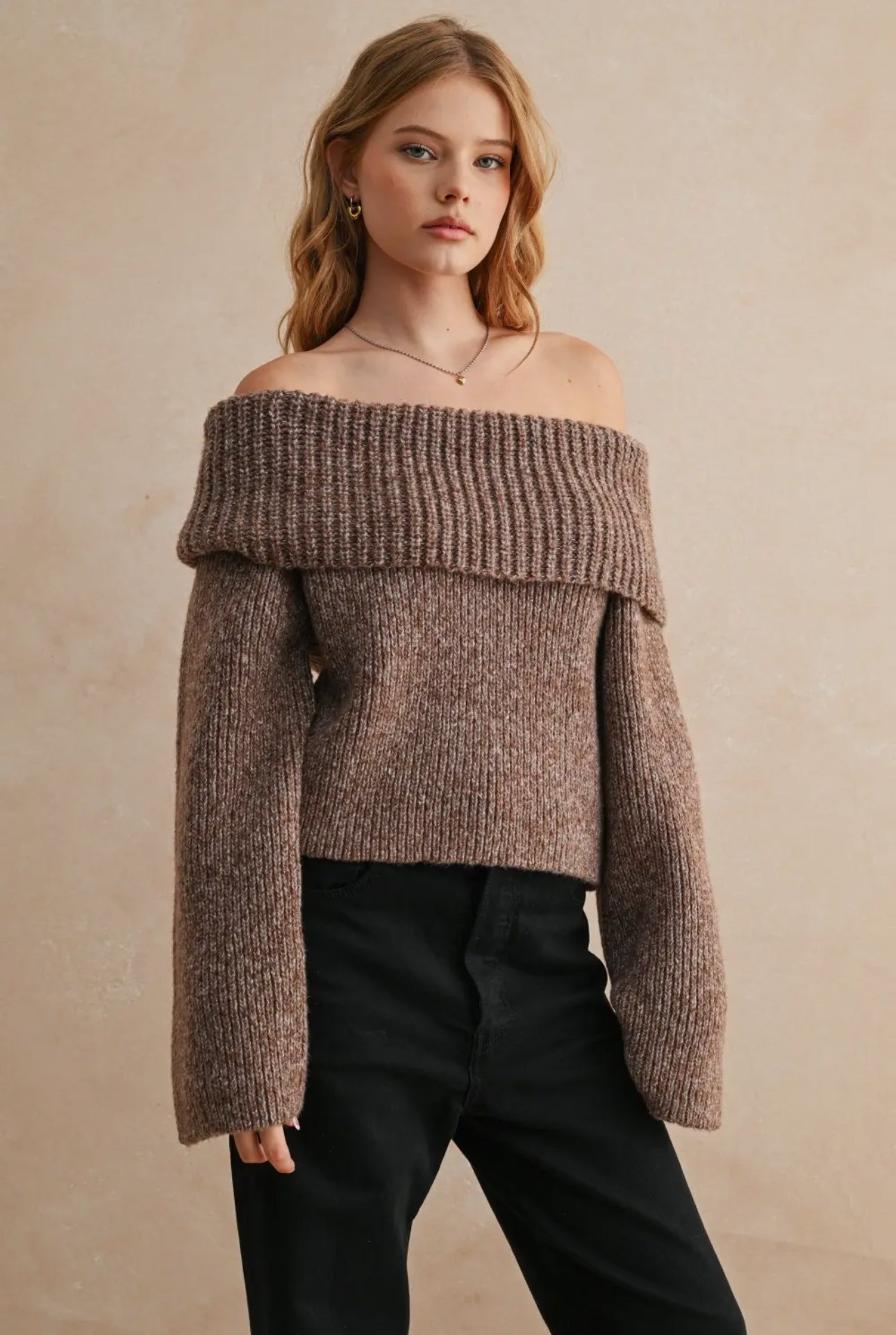 Elevate your wardrobe with the Eliana Off The Shoulder Sweater. This luxurious chunky knit sweater features an elegant off the shoulder design, perfect for adding a touch of sophistication to any outfit. Indulge in the cozy warmth and chic style of this must-have sweater, available in a rich brown hue.