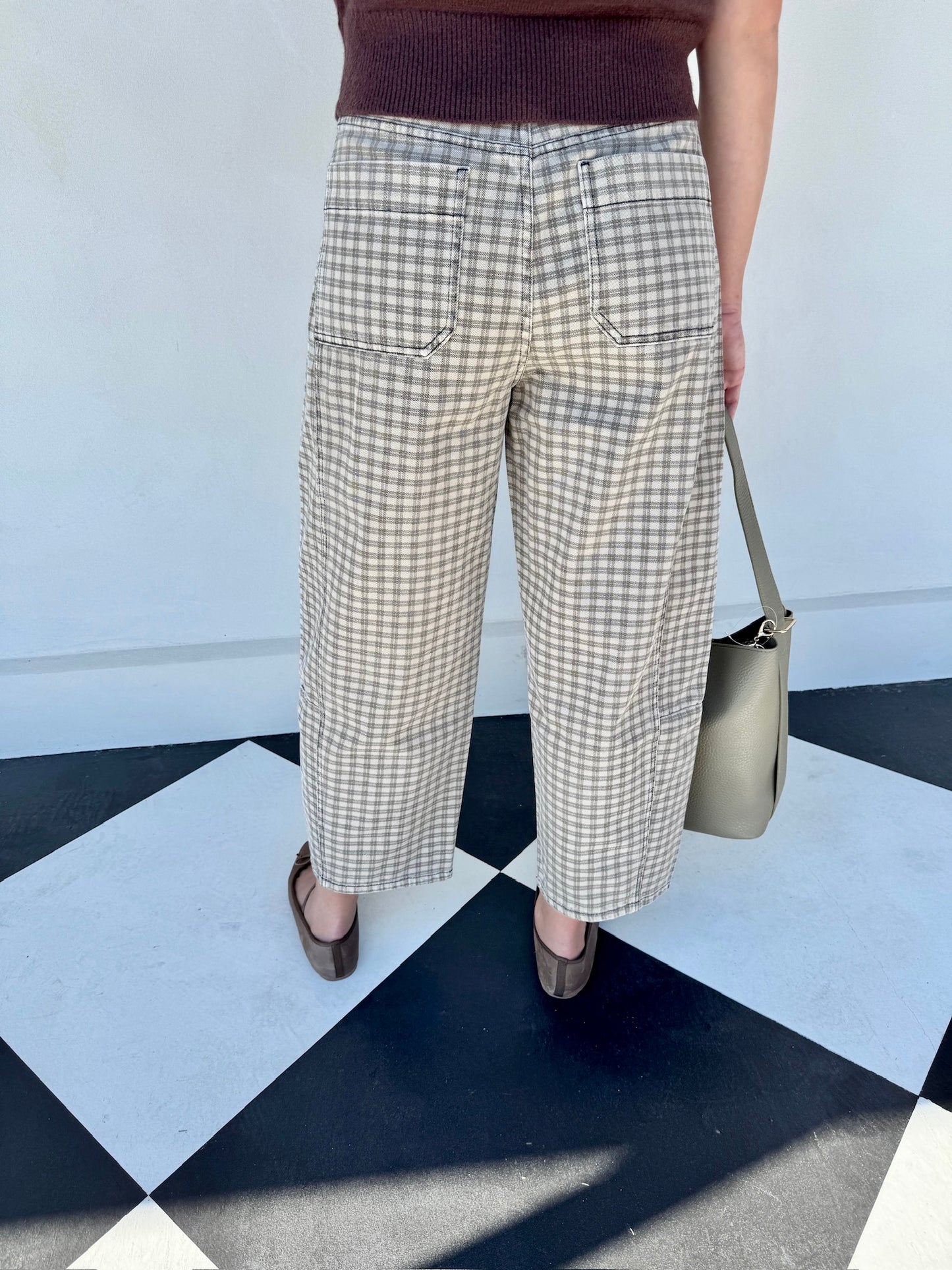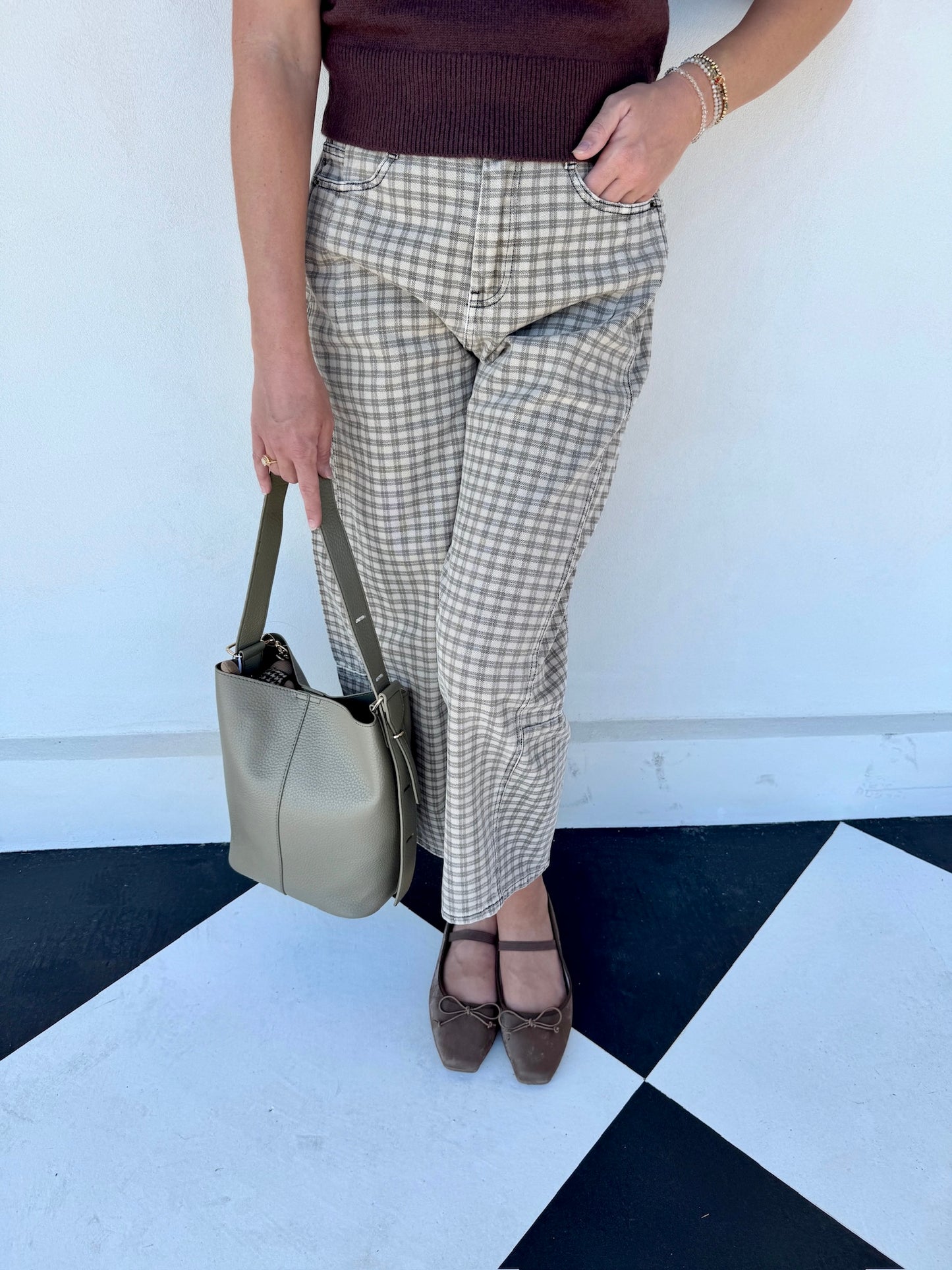 Elevate your wardrobe with the Everlee Checkered Pants, featuring a timeless checkered pattern that adds subtle sophistication to any outfit. Crafted with a tailored fit, these pants offer both comfort and a polished look, ideal for professional settings or refined casual wear. Their versatile design pairs effortlessly with blouses, blazers, or sweaters, making them a staple piece for a chic and confident style.