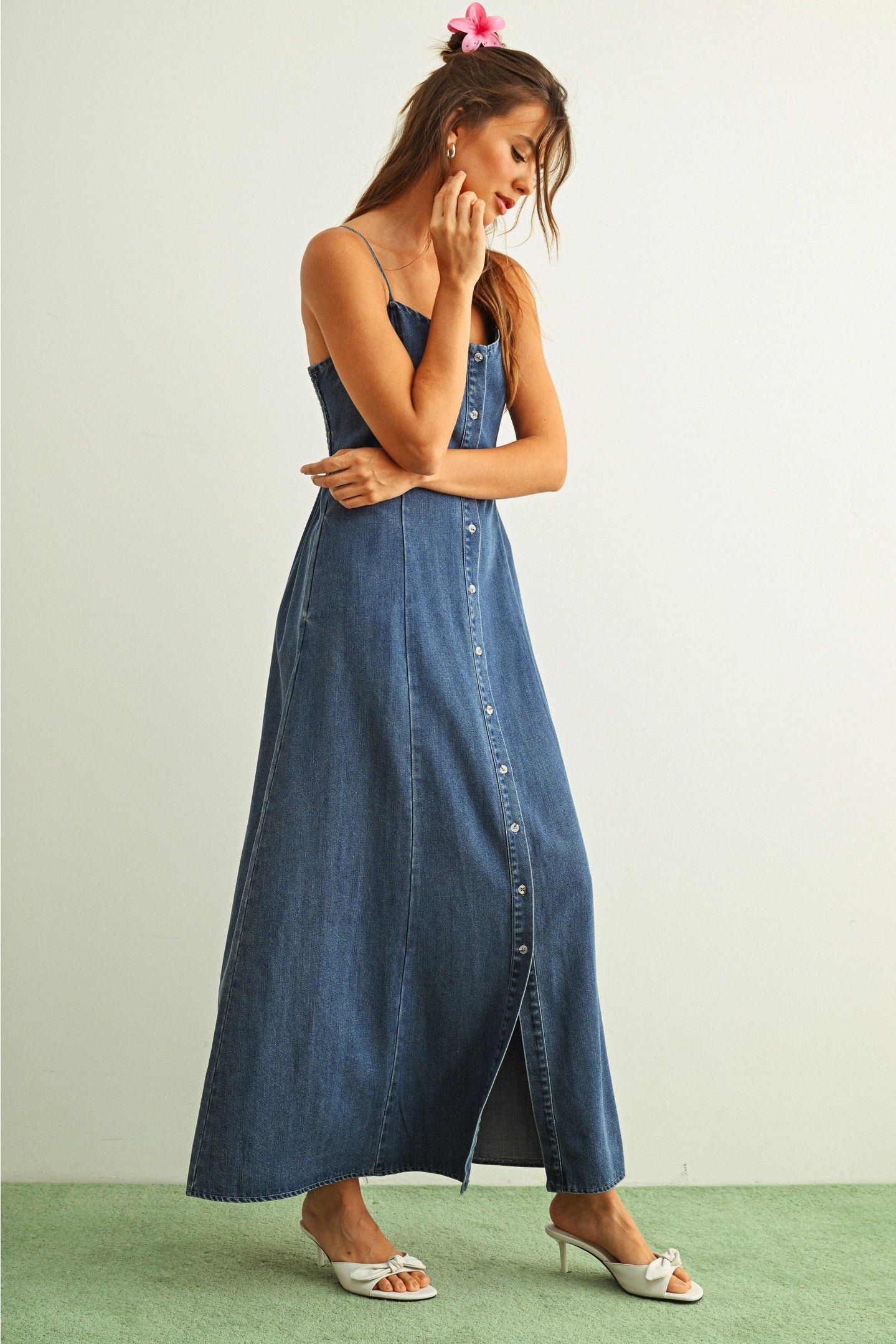 Melanie Denim Button Front Maxi Dress