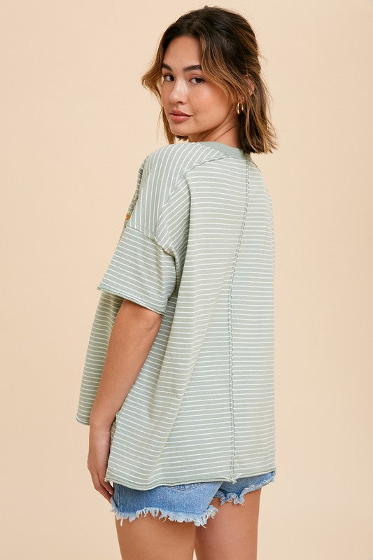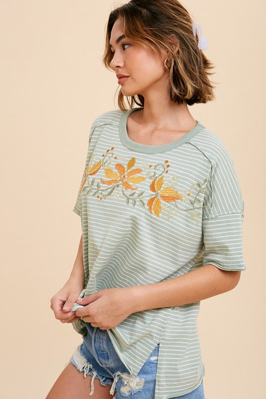Layla Sage Striped Embroidered Shirt