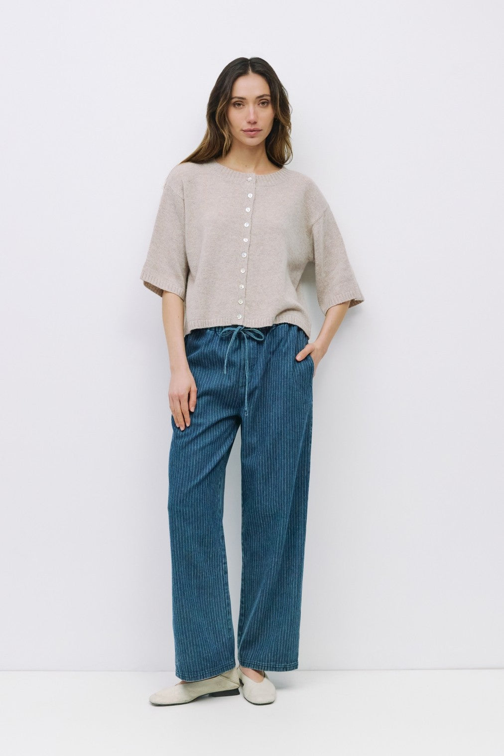 The Stacey Cardigan in beige offers a lightweight, short sleeve design that’s perfect for layering. Its soft fabric provides gentle warmth and comfort, making it a versatile addition to your wardrobe for both casual and dressy occasions. Easy to wear and style, this cardigan supports your everyday look with effortless elegance.