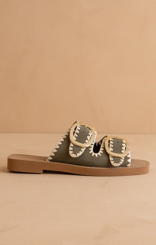 Regular price $34.99Indulge in effortless style with our Tivoli Buckle Slide in Olive. These sandals feature exquisite whip stitch detailing, making them the perfect choice for your casual summer adventures. Elevate your look with these luxurious and versatile sandals.