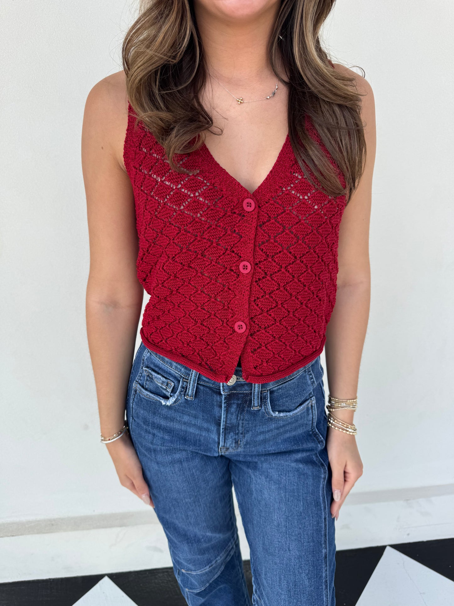 Layer effortlessly with the Venus Cardi Vest, a versatile red piece that transitions seamlessly from season to season. This thoughtfully designed vest works beautifully over your favorite tees, blouses, or dresses, giving you endless styling possibilities. The rich red hue complements any wardrobe while the classic cardigan silhouette keeps you looking polished and put-together.